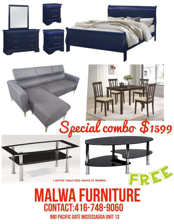 Transform your home with our Complete Furniture Package for just $1,599! Enjoy a stylish bed set, a cozy sectional sofa, a dining table, and a complimentary coffee table. Elevate your space without breaking the bank