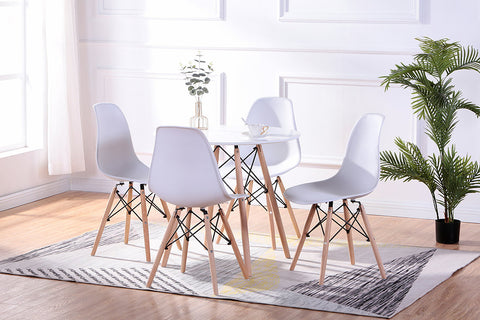 Eiffel Chair, Molded Polypropylene White Seat with Solid Beech Wood Legs and Metal Frame