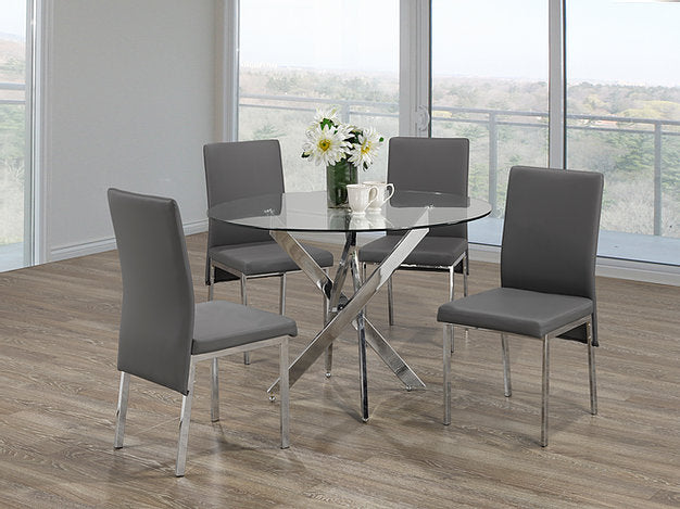 Chairs: Grey PU Cushion Seats with Chrome Legs