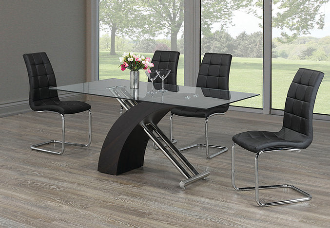 Table 10mm Tempered Glass Table With a Black Base and Chrome Legs