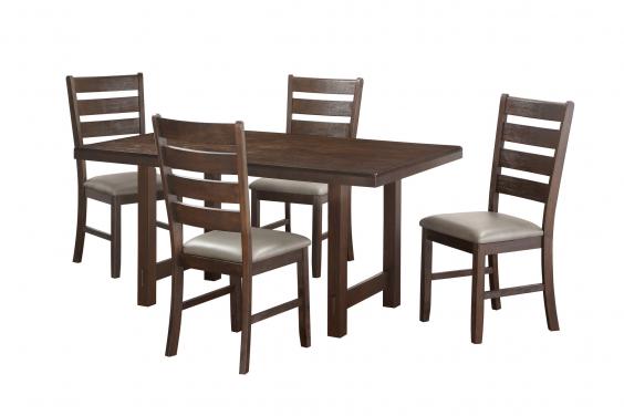 - This Dining Set includes 4 Chairs made of solid wood and matching ladder style back having grey PU upholstery.