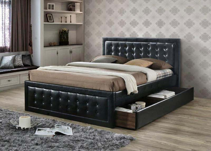 Haemus Contemporary Design Leather Upholstered King/Queen Bed Frame with Large Storage Drawer and Button Tufting