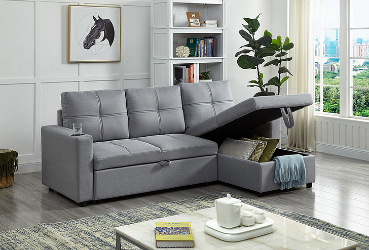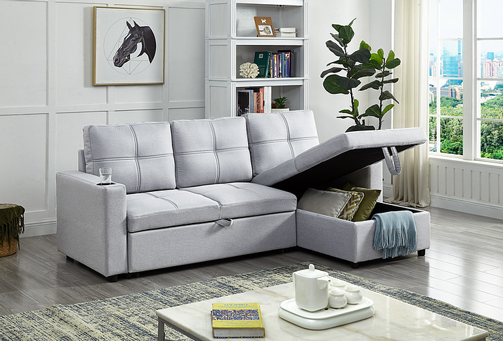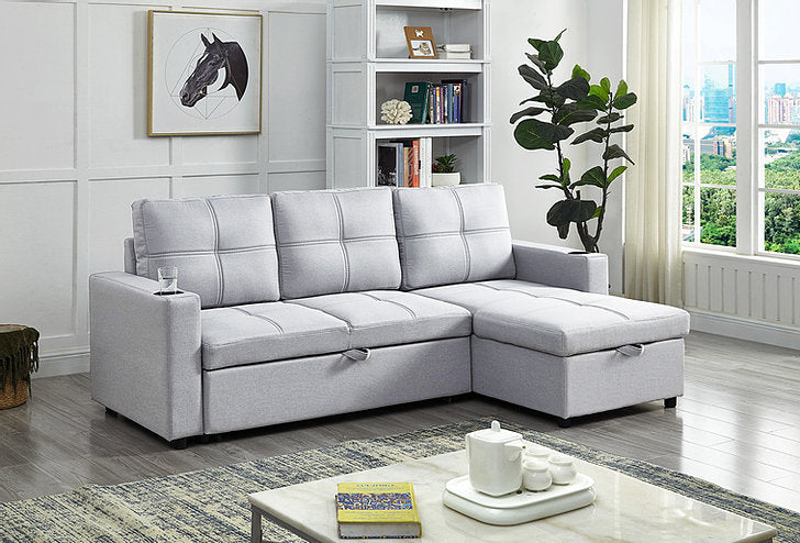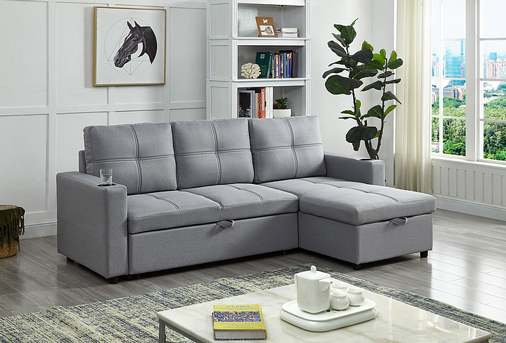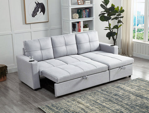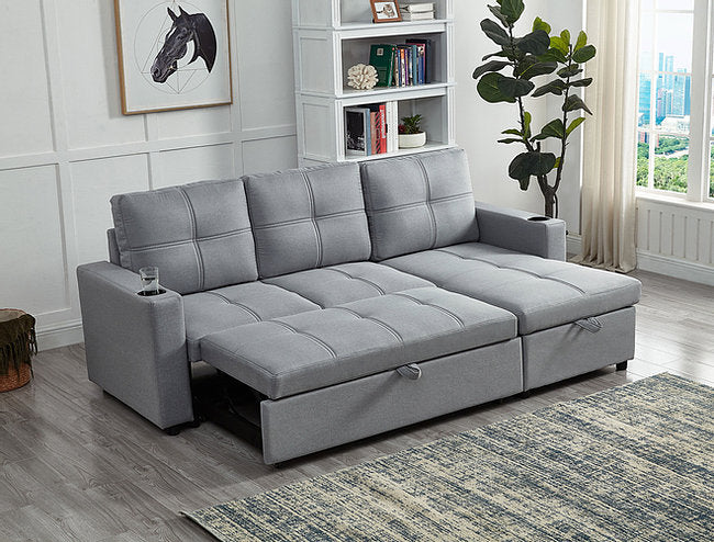 Harlton Reversible Sectional Sofa Bed with Storage Chaise and Cup Holders