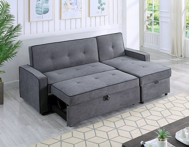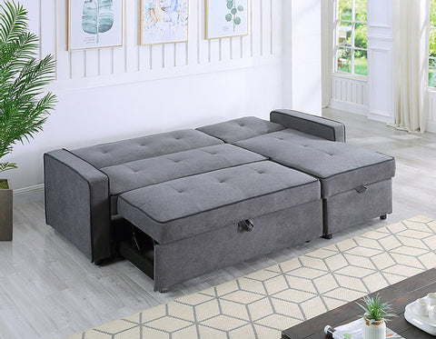 Jasper Reversible Sectional Sofa Bed with Storage Chaise and Black Piping