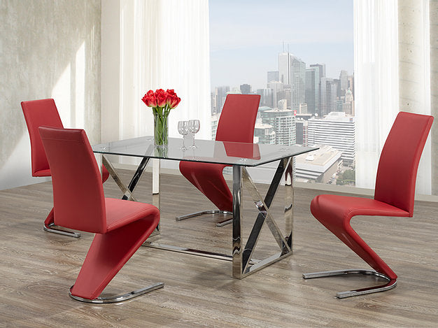 Chairs: Red PU Cushion ‘Z’ Shaped Chairs with Chrome Legs