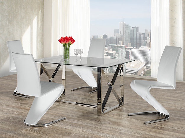 Chairs: White PU Cushion ‘Z’ Shaped Chairs with Chrome Legs