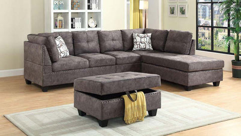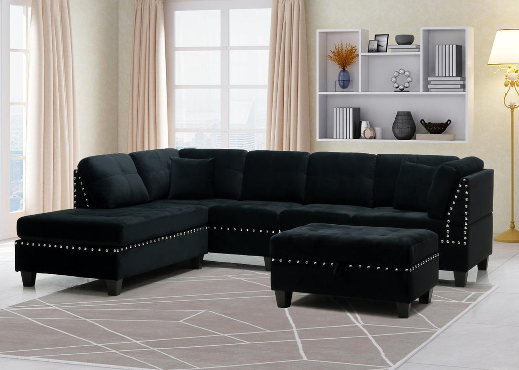 Snow Contemporary Style Velvet Plush Reversible Sectional Sofa with Nail Head Trims & FREE Storage Ottoman