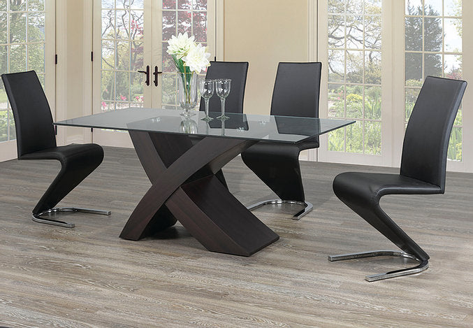 Table 10mm Tempered Glass Table With an ‘X’ Shape & Espresso Base